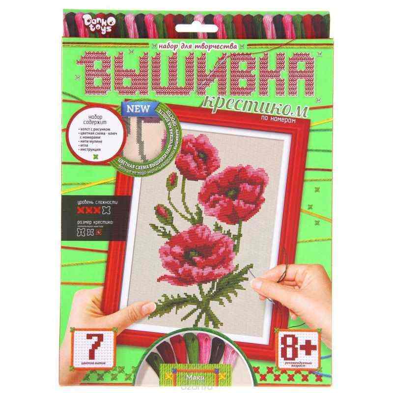 Набор для вышивания крестиком по номерам Danko Toys "Маки" отлично подойдёт для гармоничного развития творческих способностей и организации увлекательного совместного досуга. Нанесенный на основу цветной рисунок поможет вам правильно подобрать нитки по цвету, а также облегчит процесс творческой работы. Создавайте, экспериментируйте и украшайте дом оригинальными вещами, сделанными своими руками!