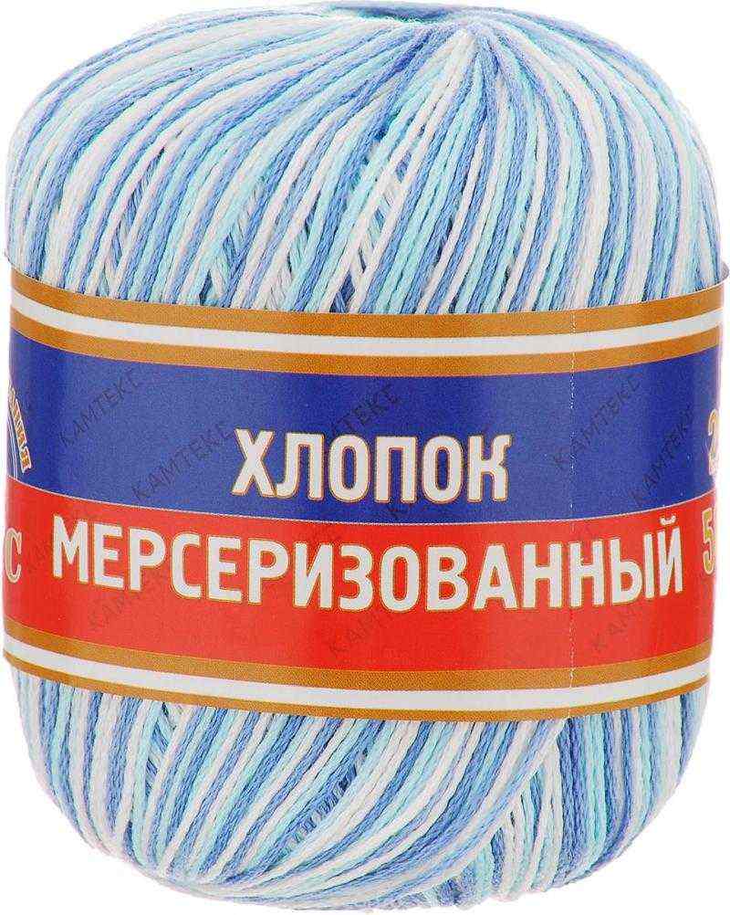 Пряжа для вязания Камтекс "Хлопок мерсеризованный", цвет: белый, синий, голубой (241), 200 м, 50 г, 10 шт Отзывы: