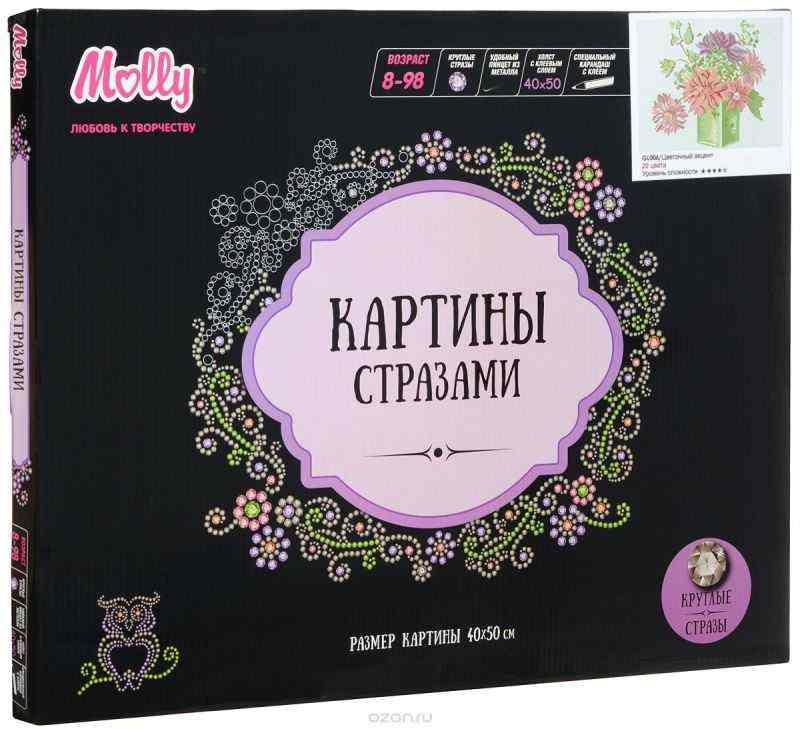 Картина стразами Molly "Цветочный акцент" - это набор для рисования, в котором картина "раскрашивается" стразами.Стразы представляют собой имитацию граненого драгоценного камня или стекла. Самое главное, занятие не требует какой-либо дополнительной подготовки. Секрет прост - алмазная картина представляет собой эскиз будущего рисунка, нанесенного на холст. Это увлекательный и полезный досуг для детей и взрослых. Как часто понятию творчество сопутствует ассоциация творческий беспорядок! Набор "Molly" позволит избежать беспорядка или свести его к минимуму. Для этого в набор включен контейнер для страз, а также удобный металлический пинцет для работы с мелкими элементами. К тому же, клеевая основа холста позволит обойтись без клея и оставить руки чистыми. Готовая картина Molly "Цветочный акцент" с изображением букета цветов станет прекрасным подарком и неотъемлемой частью вашего интерьера.