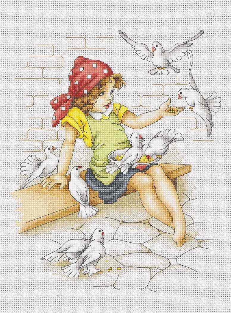 Набор для вышивания крестом Luca-S "Девочка с голубями", 18 х 22,5 см Отзывы: