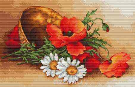 Набор для вышивания крестом Luca-S "Маки и ромашки в корзине", 40 х 25,5 см Отзывы: