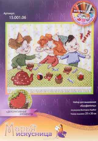 Набор для вышивания крестом Марья Искусница "Конфетти" поможет создать красивую вышитую картину. Рисунок-вышивка, выполненный на канве, выглядит стильно и модно. Вышивание отвлечет вас от повседневных забот и превратится в увлекательное занятие! Работа, сделанная своими руками, не только украсит интерьер дома, придав ему уют и оригинальность, но и будет отличным подарком для друзей и близких! Набор содержит все необходимые материалы для вышивки на канве в технике "счетный крест". Схема вышивания "Конфетти" выполнена по рисунку Виктории Кирдий. В набор входит: - канва Aida "Zweigart" №14 (белого цвета), - мулине "Finca" (27 цветов), - 3 декоративные пуговицы,- тесьма,- черно-белая символьная схема, - инструкция на русском языке, - игла. Размер готовой работы: 25 х 20 см.Размер канвы: 35 х 30 см.Длина тесьмы: 30 см.