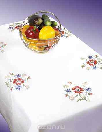 Скатерть "Полевой букет", скатерть с нанесенным рисунком, цв. инструкция, счетный крест, 130 х160 смскатерть с нанесенным рисунком, цв. инструкция