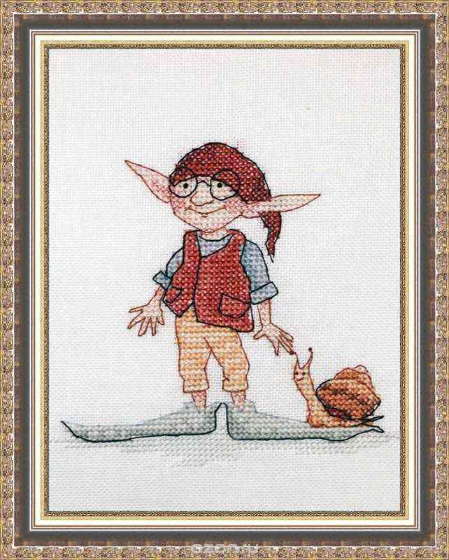 Кто быстрее всех на свете? Кто с улиткой спорит в беге? Тот великий скороход... Он спешит уже вперед. Забавная вышивка про маленького гнома, что спорит в беге с улиткой. Вышивка исполнена в иллюстративном жанре. Сдержанные пастельные оттенки и прекрасный рисунок поднимут вам настроение. В наборе есть все необходимое для создания вышивки на канве в технике "счетный крест". В набор входит: - канва "Zweigart", - мулине "Finca", - символьная схема, - инструкция на русском языке, - игла. Размер готовой работы: 11 х 11 см.