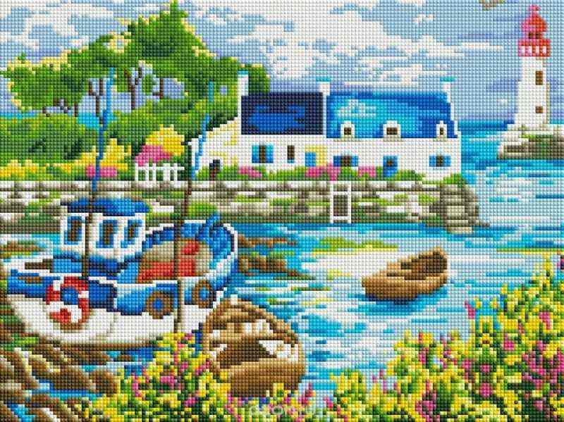 Алмазная мозаика на подрамнике Белоснежка "Домик в бухте", 30 х 40 см Отзывы: