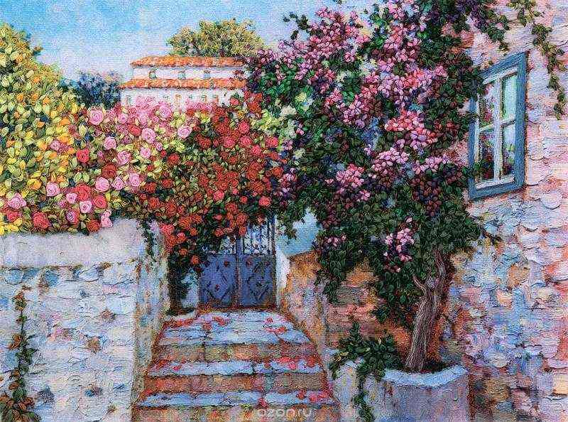 Набор для вышивания Panna "Греческий дворик" поможет создать картину в технике "объемная вышивка". Вышивание отвлечет вас от повседневных забот и превратится в увлекательное занятие! Работа, сделанная своими руками, не только украсит интерьер дома, придав ему уют и оригинальность, но и будет отличным подарком для друзей и близких! Набор содержит все необходимые материалы для вышивания. В набор входит: - ткань-габардин с напечатанным рисунком, - хлопчатобумажные нитки мулине "Gamma" (21 цвет), - шелковые ленты "Gamma" (15 цветов), - цветная схема, - инструкция на русском языке с цветными фотографиями, - игла с широким ушком для вышивания лентами, - игла для вышивания мулине. Размер готовой работы: 33,5 x 25 см.