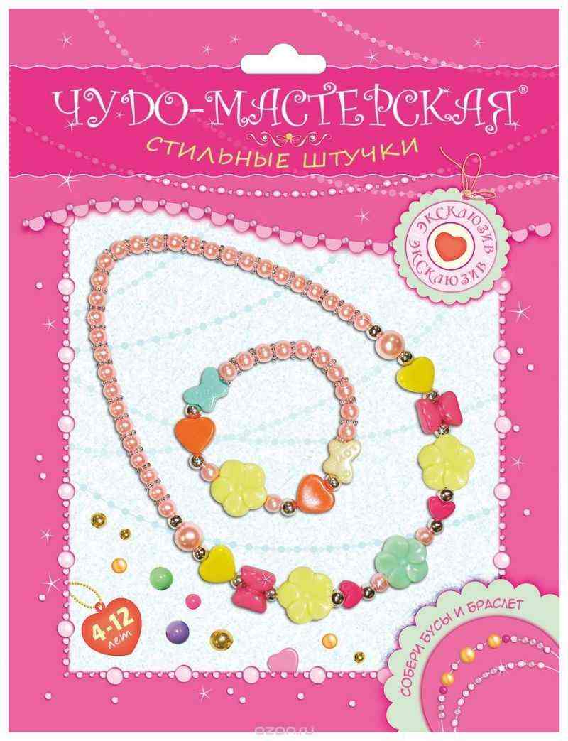 С помощью оригинального набора для творчества "Стильные штучки" маленькая модница сама легко смастерит неповторимые модные украшения: красивые бусы и яркий браслет. Многообразие форм и цветов бусинок набора позволят девочке не только создавать причудливые и интересные украшения, но и подчеркнуть свою индивидуальность, каждый раз придумывая новые фантастически стильные аксессуары к своим нарядам.