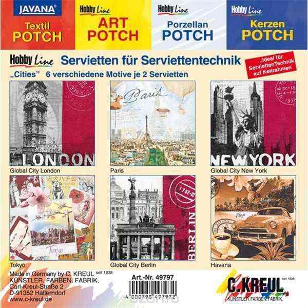 Набор салфеток для декупажа C.Kreul "Города", 12 шт (6 мотивов по 2 шт) Отзывы: