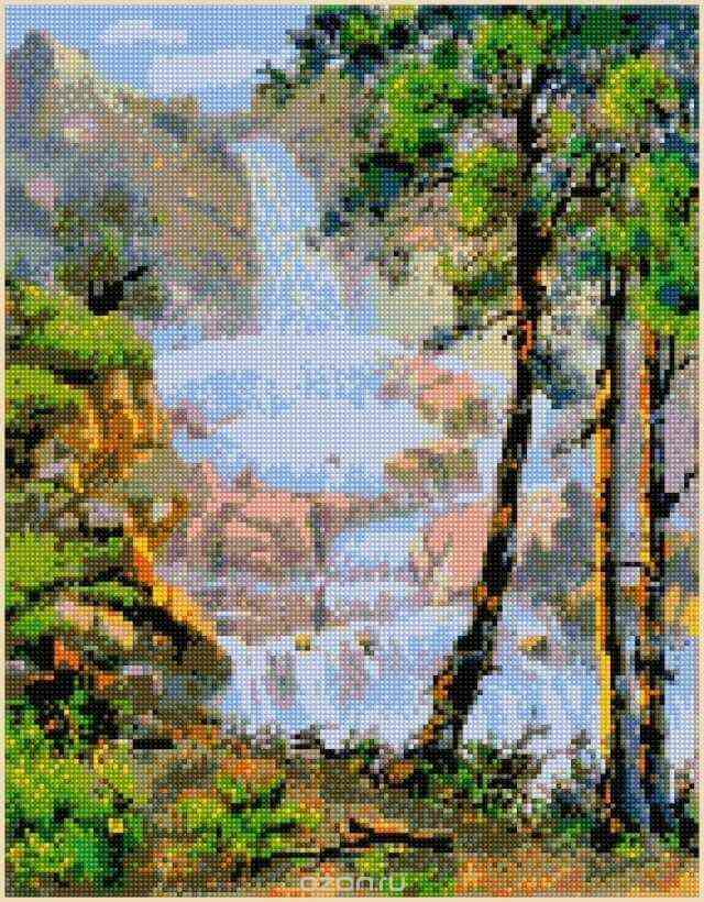 Набор для создания картины со стразами Цветной "Алмазная мозаика. Водопад вдали" 40 x 50 см Отзывы: