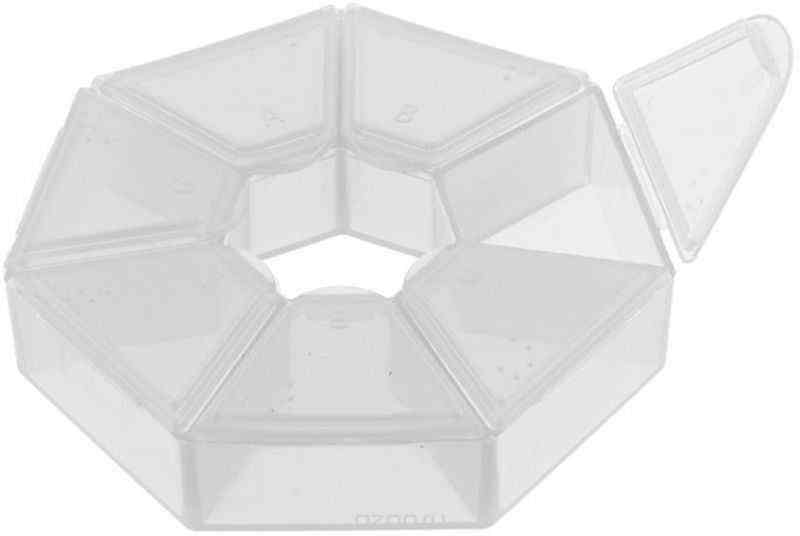 Круглый контейнер "Gamma" изготовлен из пластика со съемными защелкивающимися крышками. На секциях указаны буквы и шрифт Брайля для слабовидящих и слепых людей. Применяется для хранения бисера, мелкой фурнитуры, аксессуаров для шитья и рукоделия. Можно использовать для хранения таблеток. Отлично подходит для хранения мелких рыболовных снастей, а также канцелярских принадлежностей. Общий размер органайзера: 9,1 х 9,1 х 2,1 см.