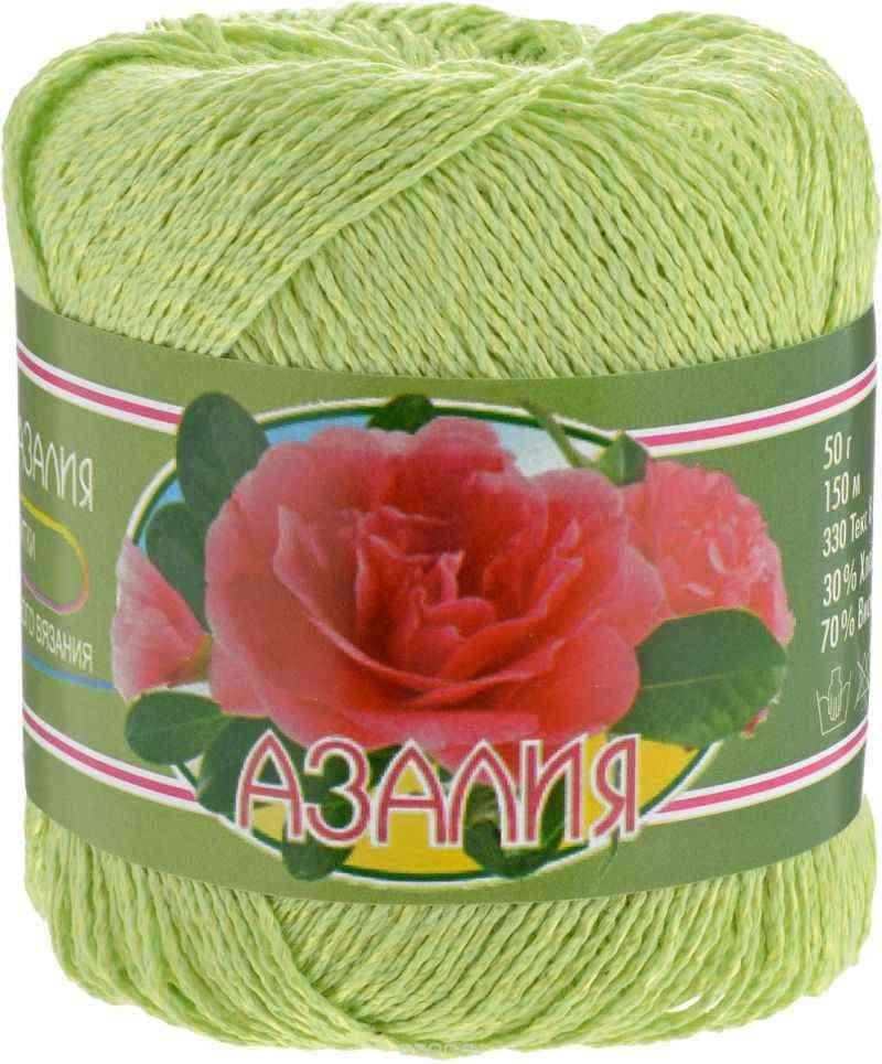 Нитки "Азалия", изготовленные из 30% хлопка и 70% вискозы, подходят для ручного и машинного вязания. Нити крученые. Окраска устойчива, особо прочная. С помощью ниток "Азалия" вы сможете связать своими руками необычные и красивые вещи. В комплект входят 4 клубка. Линейная плотность: 330 текс. Количество сложений: 8.