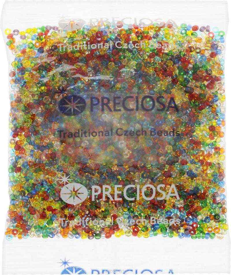 Бисер Preciosa "Ассорти", прозрачный, цвет: зеленый, синий, желтый, красный, 10/0, 50 г. 163142