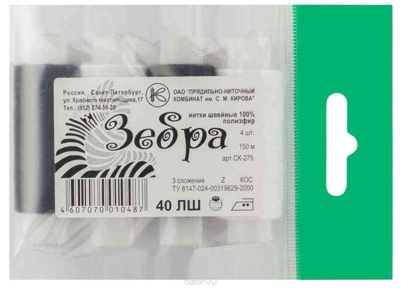 Набор "Зебра" состоит из 4 катушек с армированными нитками черных и белых цветов, устойчивых к выцветанию. Универсальная швейная нить в 3 сложения изготовлена из 100% полиэфира. Рекомендуется для вышивки на бытовых швейных машинах, а также для ручной вышивки.