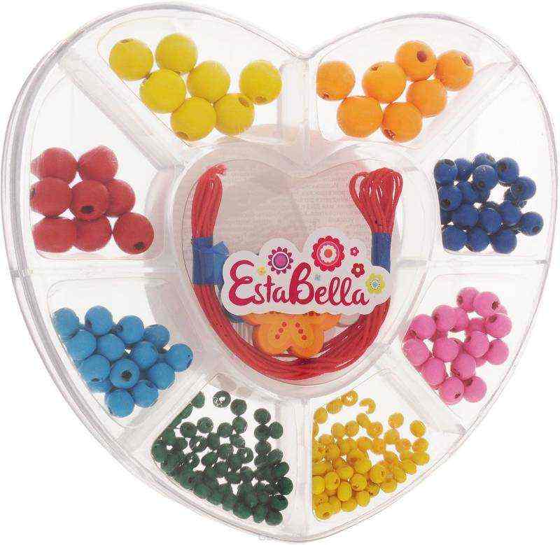 Набор для создания украшений EstaBella "Сердечко" включает в себя разноцветные деревянные бусинки и эластичный шнур.Бусинок много, они отлично подходят для детских аксессуаров. Девочка сможет сделать авторские украшения по своему вкусу. Набор не ограничивает ребенка в проявлении фантазии, малышка может сделать двойные или тройные браслеты, а также бусы.Работа с таким набором способствует развитию способностей к рукоделию и формированию эстетического вкуса.