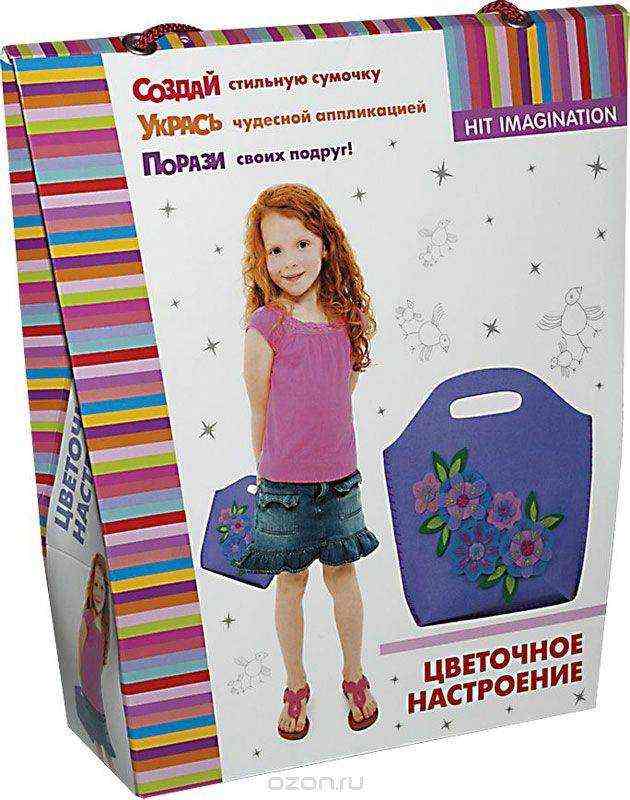 Все девочки обожают красивые сумочки. С помощью великолепного набора "Hit Imagination" ваша малышка сможет самостоятельно сделать желаемую сумочку. Вот обрадуется маленькая принцесса такому подарку!При изготовлении набора использовались только самые лучшие и качественные материалы. Вы можете быть абсолютно спокойны за здоровье вашего ребенка. В красивой коробочке вы найдете нитки, фетровые выкройки, безопасную иглу, инструкцию. При желании девочка может украсить готовую работу аппликацией.
