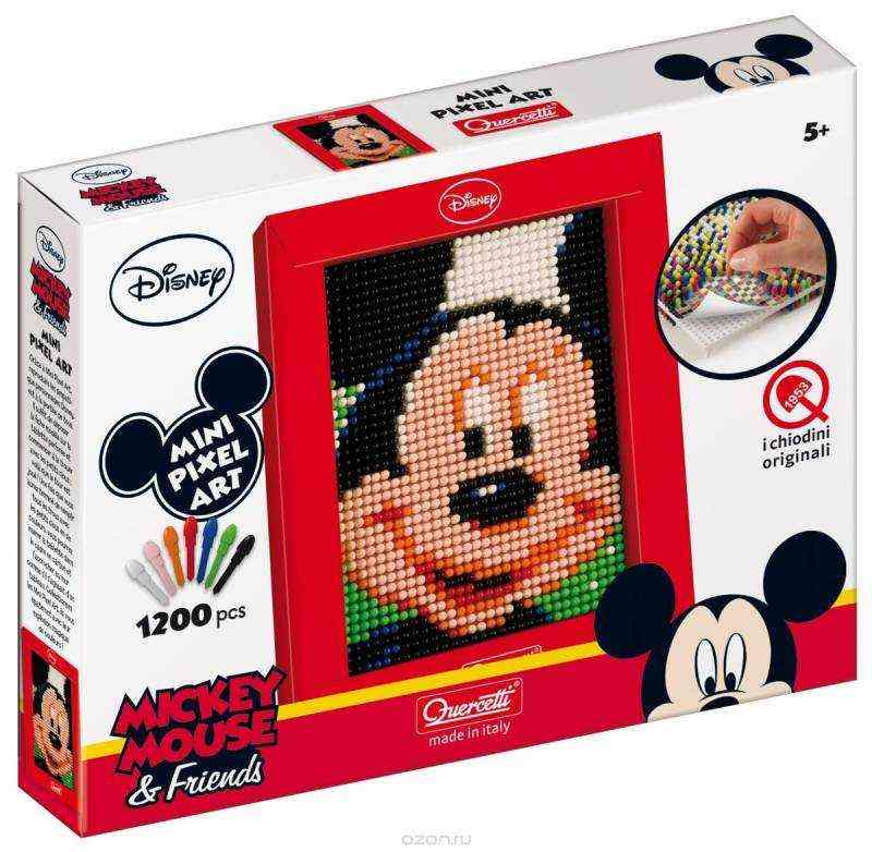 Пиксельная мозаика Quercetti "Мини Микки" непременно понравится любому маленькому поклоннику мультфильмов студии "Дисней" и позволит ему почувствовать себя настоящим художником. С помощью такой мозаики малыш сможет своими руками создать уникальные картины. Набор включает в себя 1200 деталей 7-и цветов, основу (наборную доску), картонную рамку, направляющий лист, плакат и инструкцию. Просто положите цветную схему на рабочее поле и начинайте втыкать гвоздики соответствующего цвета. Элементы мозаики легко извлекаются из игрового поля, что позволяет создавать множество разнообразных картин. Собирание мозаики развивает у детей творческие способности, внимание, усидчивость и мелкую моторику. Порадуйте своего ребенка таким замечательным подарком!