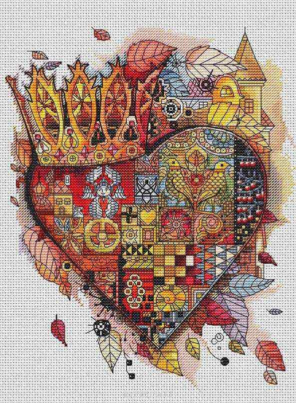 Набор для вышивания "Королевское сердце" поможет вам создать свой личный шедевр - красивую картину, вышитую крестом. Работа, выполненная своими руками, станет отличным подарком для друзей и близких! Набор содержит: - канва Аида 14 белого цвета, - нитки мулине (100% хлопок), 52+13 блендов, - 2 иглы, - цветная символьная схема для вышивания, - инструкция на русском языке. Размер канвы: 28 х 33 см. Техника вышивки: полный счетный крест. Художник: Оксана Заика. Дизайнер: Екатерина Чайковская.