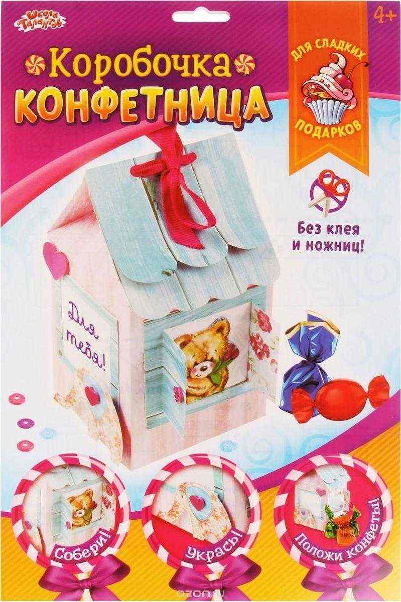 Набор для создания коробочки-конфетницы "Домик" от Школы талантов - оригинальный подарок!Мы так любим получать подарки с тёплыми пожеланиями от близких людей и родственников! Особенно если такой сувенир сделан своими руками.Данный оригинальный набор позволит изготовить маленький сюрприз самостоятельно!Вам не понадобятся клей и ножницы. Все элементы уже подобраны для вашего талантливого малыша, который будет с удовольствием создавать коробочку-конфетницу!В набор входит подробная инструкция, с помощью которой легко собрать коробочку:отделите от основы элементы из плотного картона и соберите их;склейте их с помощью клейкой ленты;украсьте коробочку декором и вложите сладкий подарочек!Готовый шедевр можно подписать и подарить близким - такой подарок приятно удивит каждого!Развивает мелкую моторику, координацию движений; раскрывает разносторонние таланты малыша; формирует усидчивость, аккуратность и внимательность.Творите, экспериментируйте, развивайте способности ребёнка и радуйтесь вместе с ним новым успехам!