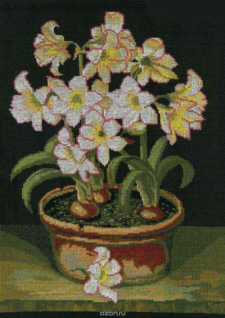 Набор для вышивания крестом Nitex "Белые цветы", 29 х 41 см Отзывы: