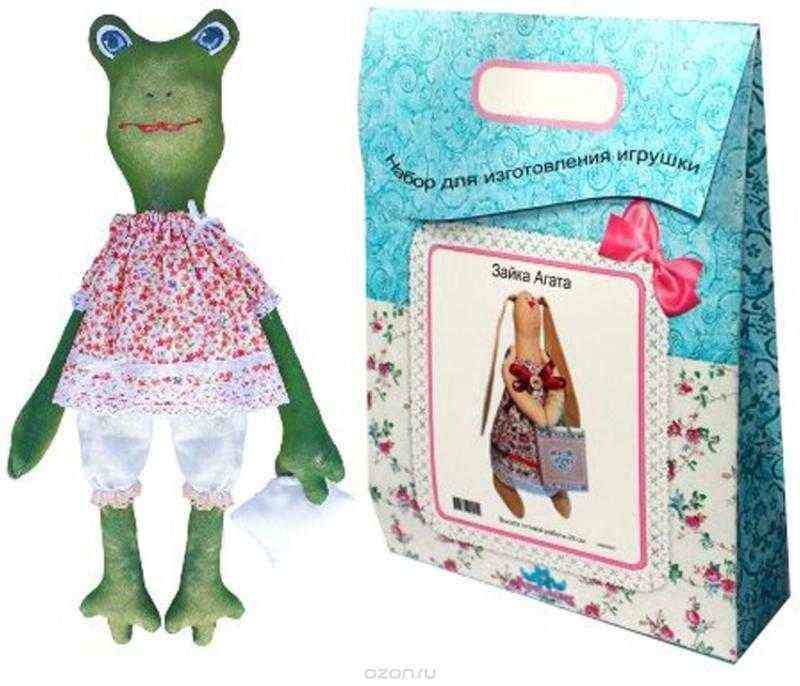 В наборе для изготовления текстильной игрушки "Хлоя" есть все необходимое для создания куклы в стиле Tilda: ткань для тела игрушки (100% хлопок), ткань для одежды (100% хлопок), декоративные элементы, пуговицы, нитки для волос, ленточки, кружево, украшения, суперпух и инструмент для набивки игрушки, выкройка, инструкция на русском языке. Вам потребуется: нитки, иголка. По желанию, вы можете использовать акриловые краски для прорисовки лица игрушки, кофе растворимый, клей ПВА (для тонирования игрушки). Необычайной красоты мягкая игрушка в виде забавного лягушонка в платьице, сделанная своими руками, привлечет к себе внимание и будет потрясающе смотреться в интерьере вашего помещения, особенно в интерьере детской комнаты. Текстильные куклы популярны во всем мире - их коллекционируют, украшают ими дом. Интерьерная кукла или просто забавная примитивная игрушка ручной работы может стать украшением дома и оригинальным подарком, который несет в себе любовь и тепло человеческих рук. Эти куклы могут быть абсолютно разными, но все они очень нежные и уютные! Это не только увлекательное занятие, как для взрослых, так и для детей, но и возможность самовыражения, отдых и милые воспоминания о детстве. Текстильные куклы - целый мир, в который хочется окунуться с головой! Характеристики: Размер готовой работы: 44 см. Размер упаковки: 30 см х 22 см х 6 см. Артикул: AM200021.