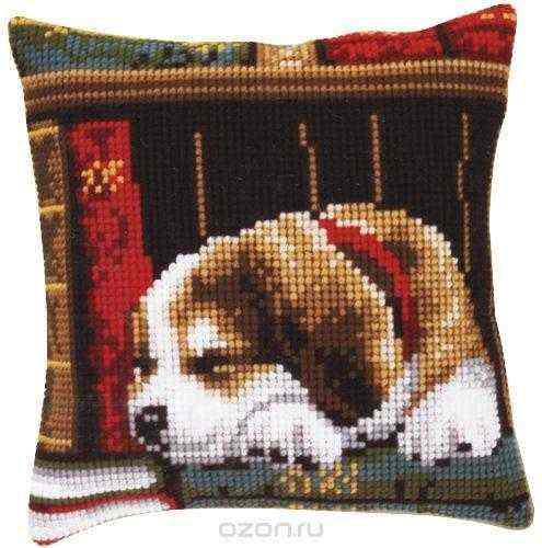Набор для вышивания подушки крестом Vervaco "Собака, спящая на книжной полке", 40 см х 40 см Отзывы: