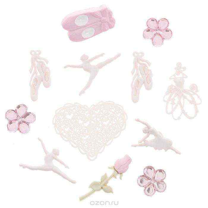 Набор Dress It Up "Балет" состоит из 10 декоративных пуговиц и фигурок, выполненных из пластика с изображением вещей, с которыми ассоциируется балет. Такие пуговицы и фигурки подходят для любых видов творчества: скрапбукинга, декорирования, шитья, изготовления кукол, а также для оформления одежды. С их помощью вы сможете украсить открытку, фотографию, альбом, подарок и другие предметы ручной работы. Пуговицы и фигурки разных цветов имеют оригинальный и яркий дизайн.