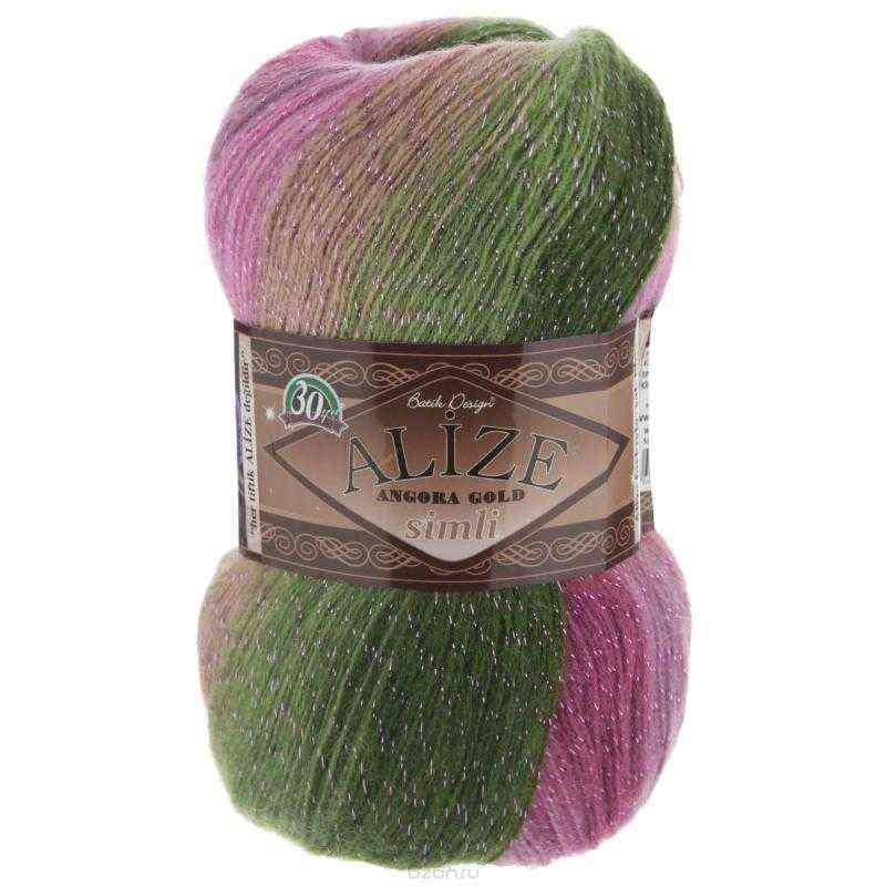 Пряжа для вязания Alize "Angora Gold Batik. Simli", цвет: малиновый, розовый, зеленый (2527), 500 м, 100 г, 5 шт Отзывы: