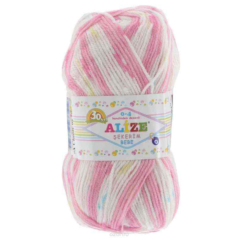 Пряжа для вязания Alize "Sekerim Bebe", цвет: розовый, белый (102), 350 м, 100 г, 5 шт Отзывы: