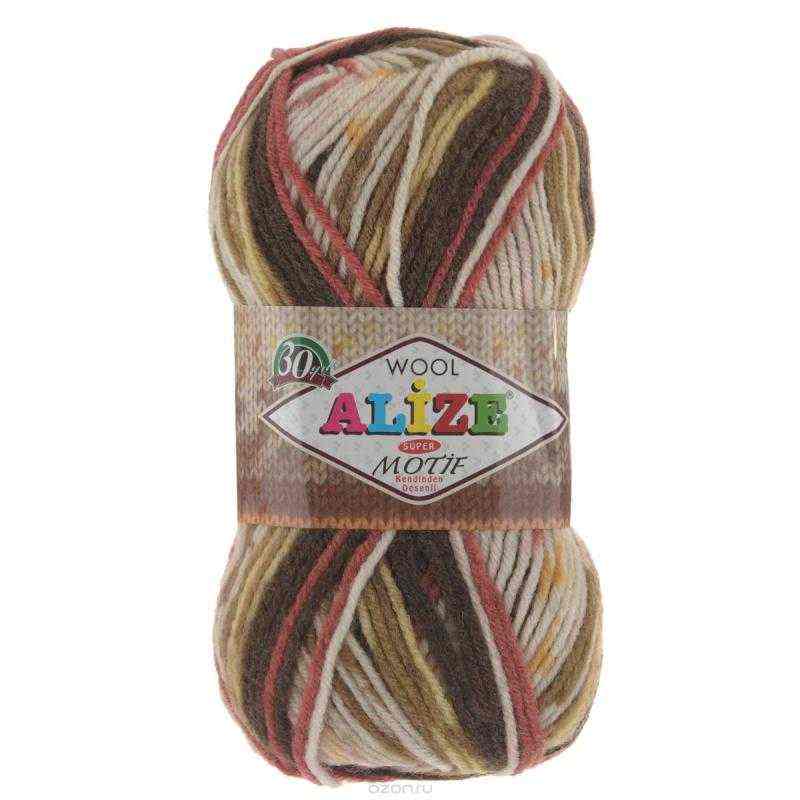 Пряжа для вязания Alize "Motif", цвет: белый, коричневый, красный (2958), 200 м, 100 г, 5 шт Отзывы: