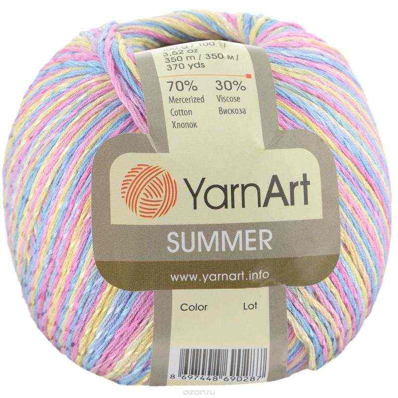 Пряжа для вязания YarnArt "Summer", цвет: голубой, желтый, розовый (124), 350 м, 100 г, 4 шт Отзывы: