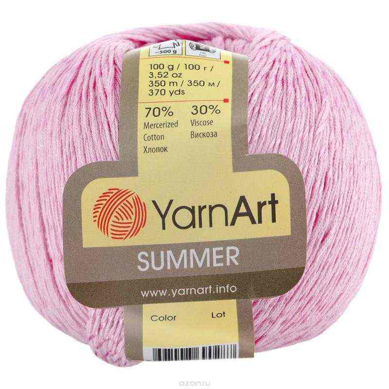 Пряжа YarnArt "Summer" - классическая пряжа для вязания, которая идеально подходит для летнего гардероба, ажурных изделий. Нить средней толщины, структура состоит из хлопковой нити, оплетенной шелковистой вискозной. Скрутка плотная, не раздваивается в процессе вязания, не перекручивается, работать с такой пряжей комфортно. Готовое полотно не косит в процессе работы. Стоит обратить внимание, что крупные ажуры могут немного вытягиваться под собственным весом. Рекомендуется связать образец прежде, чем вязать изделие. Однако готовое изделие превосходно в носке. Палантины, пончо, юбки красиво драпируются. YarnArt "Summer" - замечательная летняя пряжа для взрослых и детей. Можно вязать спицами и крючком платья, панамы, кофты, топы, жилеты, юбки, сарафаны, джемпера, изысканные шали и палантины, а также создавать аксессуары, например, сумочки. Рекомендованы для вязания крючки и спицы 3-3,5 мм. Состав: 70% хлопок, 30% вискоза.