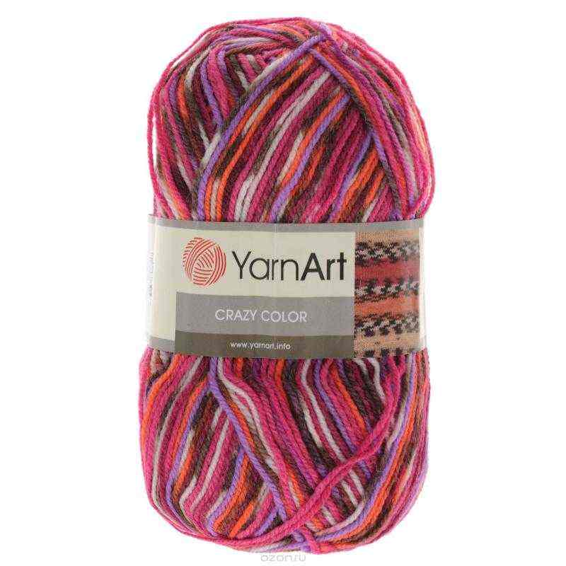 Пряжа для вязания YarnArt "Crazy Color" изготовлена из шерсти и акрила. Эта полушерстяная классическая пряжа фантазийной окраски подходит для ручного вязания. Нить мягкая, плотной скрутки, послушная, не расслаивается, не тянется, легко распускается и не деформируется. Пряжа очень мягкая, приятная на ощупь и вяжется быстро. Ниточка очень экономная, не скатывается. В результате получаются очень оригинальные и забавные рисунки. Может с успехом применяться для вязания детской одежды, кардиганов, пуловеров и пр. Пряжа YarnArt "Crazy Color" - секционной окраски отлично смотрится и в простой вязке и при выполнении сложных узоров. Пряжа окрашена стойкими качественными красителями, не линяет. Рекомендуются спицы и крючок 3,5 мм. Состав: 25% шерсть, 75% акрил.