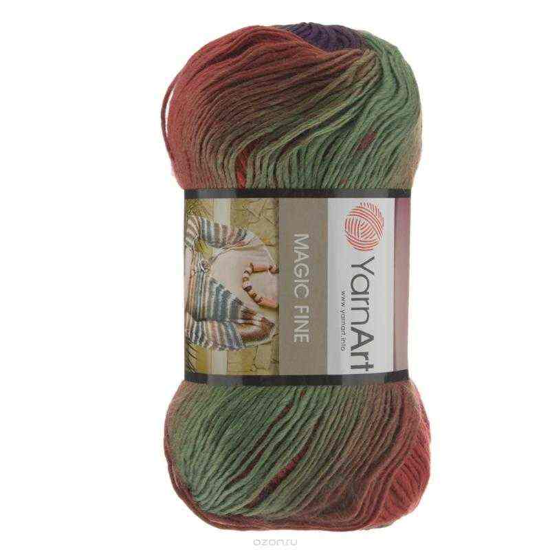 YarnArt Magic Fine - мягкая полушерстяная пряжа секционного крашения, цвета плавно переходят от одного к другому. Идеально подходит для вязания как взрослых, так и детских изделий. Эта тонкая пряжа хорошо подходит как для вязальных машин, так и для ручного вязания. Нить можно использовать в одно, в два или больше сложений. Она отлично подходит для ажурных вещей, и в тоже время из неё получаются прекрасные объёмные джемпера и кофты. А наличие в составе акрилового волокна - гарантия того, что вещи не будут деформироваться и линять после многих стирок. Рекомендуются спицы и крючок 3,5-4 мм. Состав: 50% шерсть, 50% акрил. В настоящее время вязание плотно вошло в нашу жизнь, причем не столько в виде привычных свитеров, сколько в виде оригинальных, изящных моделей из самой разнообразной пряжи. Поэтому так важно подобрать именно ту пряжу, которая позволит вам связать даже самую сложную и необычную модель изделия.