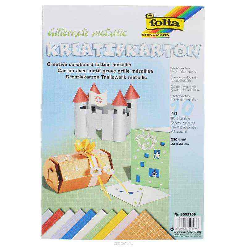 Картон Folia "Сетка" с оригинальной текстурой идеально подходит для декора, скрапбукинга, создания поздравительных карточек, украшения интерьера, различных поделок и др. Картон прекрасно держит форму и отлично крепится. Размер листа: 23 см х 33 см. Плотность: 230 г/м2. Комплектация: 10 листов.