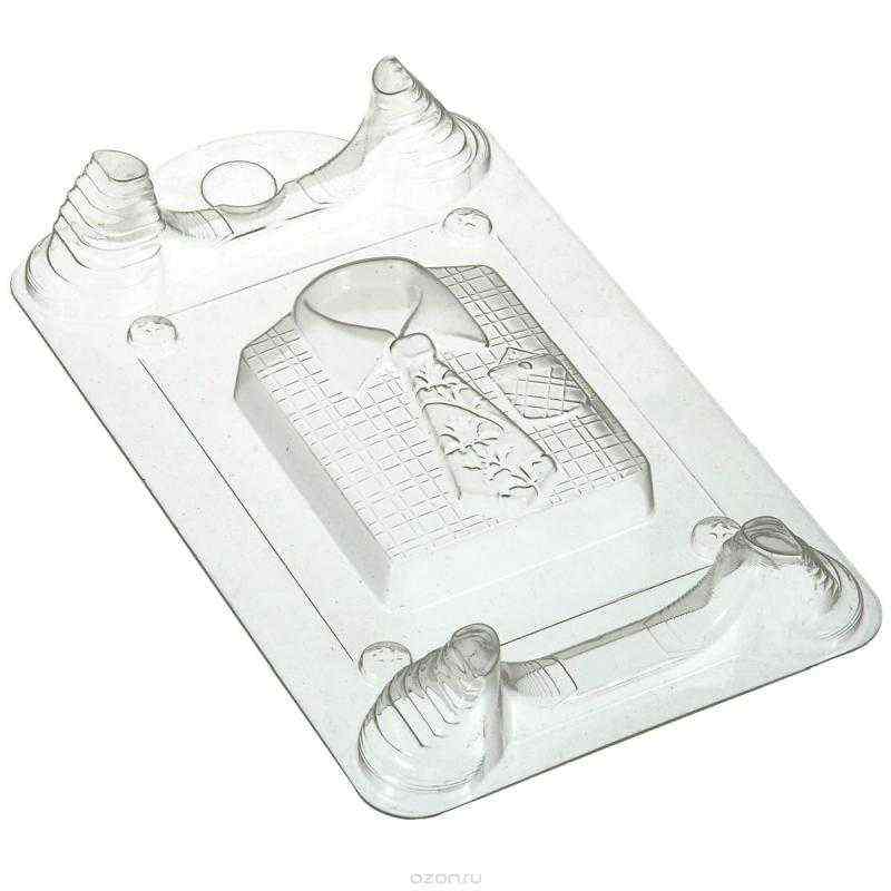Пластиковая форма "Первый парень на деревне" позволяет изготовить оригинальное и красивое мыло ручной работы. Она выдерживает температуру до 67°С. Если вы всерьез увлеклись изготовлением мыла, такая форма вам просто необходима! Также изделие можно использовать при проведении мастер-классов, обучении детей и новичков мыловарению. Благодаря специальным четырем ножкам, форма устойчиво стоит на любой твердой поверхности, а мыло быстро застывает, так что вы почти сразу увидите готовый результат.По окончании работы у вас получится превосходное мыло с рельефным изображением мужской рубашки с галстуком. Общий размер формы: 19 см х 11,5 см х 3 см. Размер формочки для мыла: 6 см х 8 см х 1,8 см.