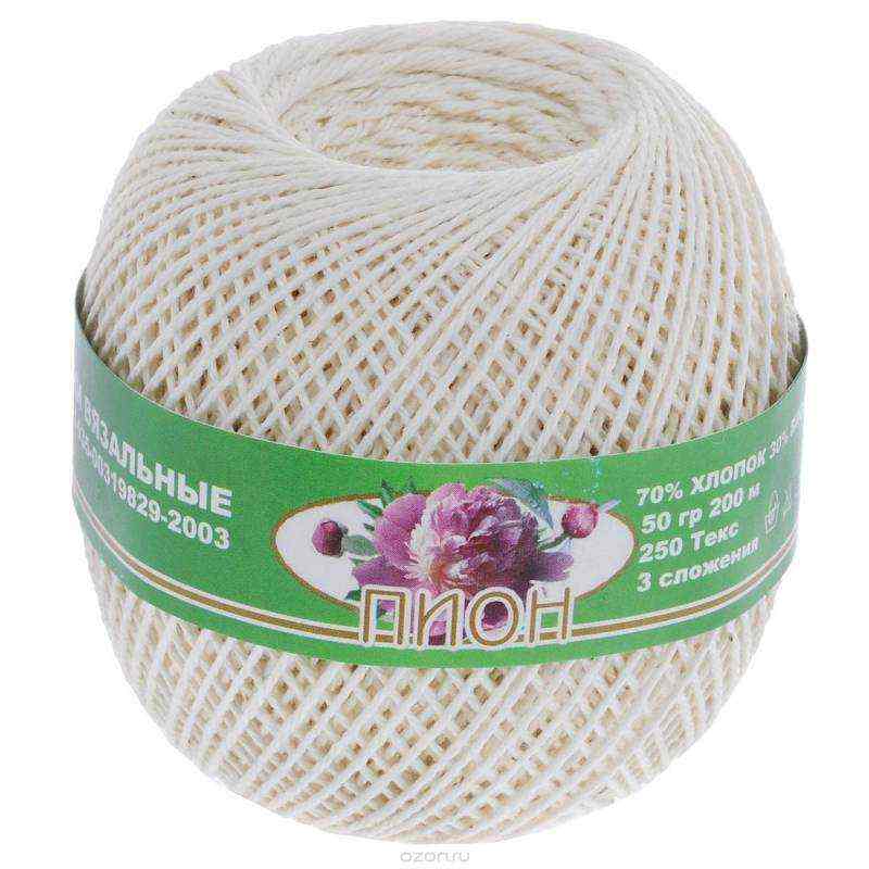 Нитки вязальные "Пион", хлопчатобумажные, цвет: молочный (0102), 50 г, 200 м, 4 шт Отзывы:
