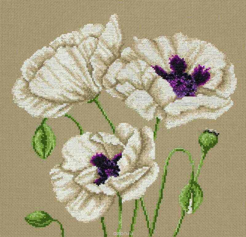 » Набор для вышивания Maia "White Poppies" /Белые маки/ 25*25см (состав: канва Aida 16, цветная схема, нитки Anchor, игла, инструкция), счетный крест