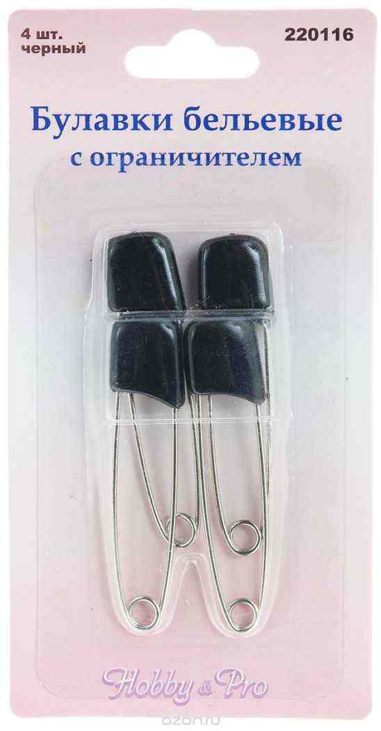 Булавки бельевые "Hobby&Pro", с ограничителем, цвет: черный, стальной, длина 5,2 см, 4 шт Отзывы:
