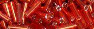 Стеклярус 100 гр №25 красный прозр с посеребреннм отв